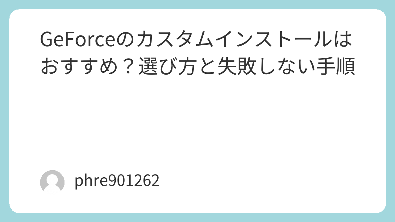 GeForceのカスタムインストールは、全員におすすめする方法ではありません。ですが、不具合が出たとき、更新後に違和感があるとき、環境を一度きれいに整えたいときには、とても頼れる選択肢です。