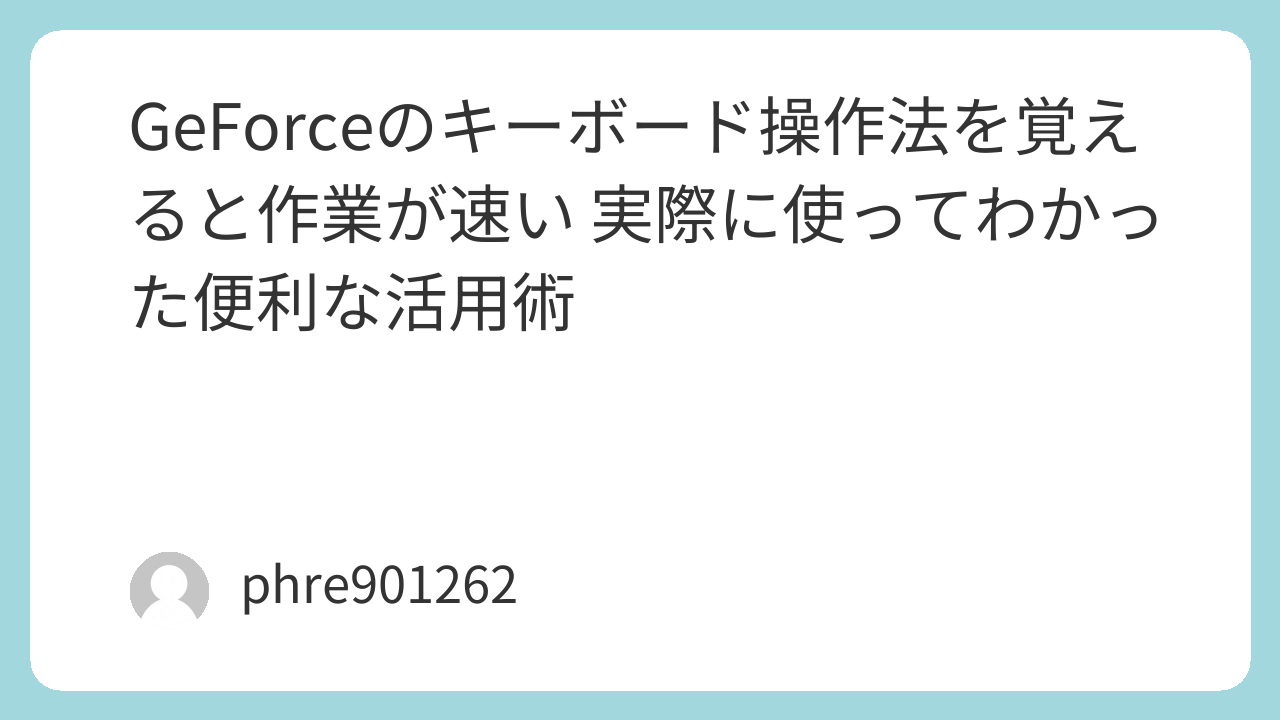 まずは基本の操作をいくつか試して、よく使うものだけを手に馴染ませるのがおすすめです。GeForce環境をもっと快適にしたいなら、キーボード操作の習得はかなり効果があります。地味に見えて、使い始めると差が出ます。