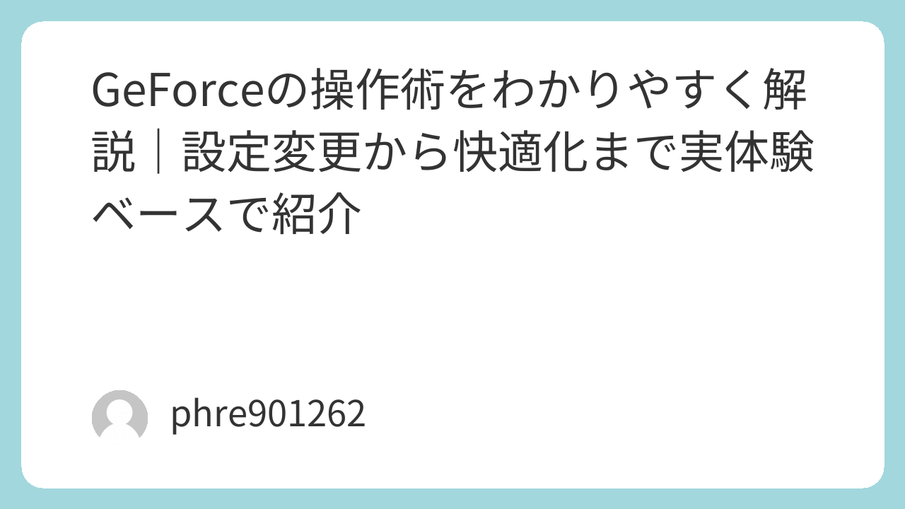 GeForceの操作術は、知識量より順番のほうが大事です。いきなり細かな設定に入るより、まず基本を確認し、そのあと必要な機能だけ広げていく。この流れなら失敗しにくいです。
