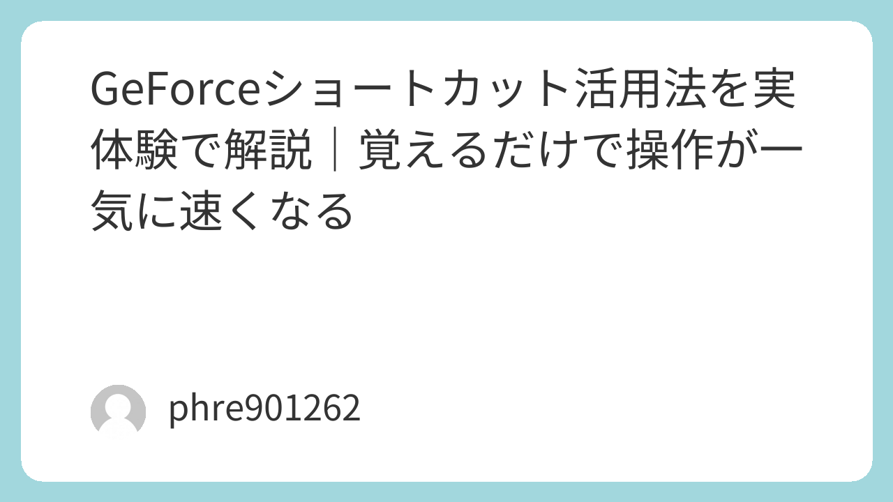 GeForceのショートカットは、派手ではないものの、使い始めると手放しにくい機能です。理由ははっきりしていて、速い、迷わない、ミスが減る、この三つがそろっているからです。