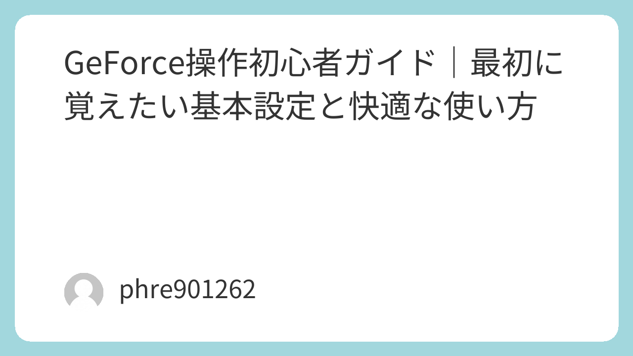 GeForceの操作でいちばん大事なのは、いきなり細かい設定を全部変えないことです。最初に触る場所を絞るだけで、失敗しにくくなります。
