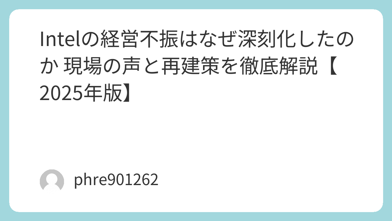 外から見ると、Intelは依然として巨大企業です。売上規模も技術資産も大きい。けれど、巨大企業であることと、現場が前向きに回っていることは別問題です。むしろ規模が大きいからこそ、ひとたび不安が広がると修復に時間がかかります。こうした現場の温度感は、経営不振を読み解くうえで欠かせません。