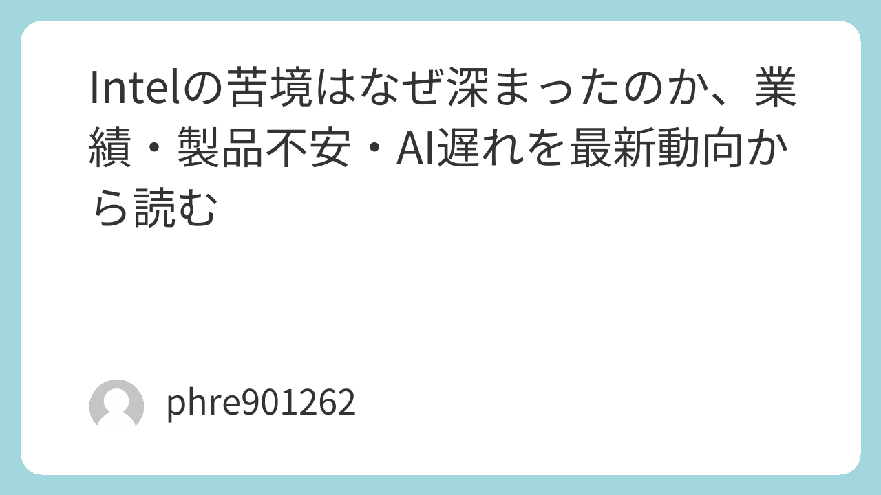 「intelはもう厳しい」「最近は別の選択肢を選ぶ人が増えた気がする」。そんな声を見聞きして、intelの今を気にする人はかなり増えました。実際に「intel 苦境」と検索する人の多くは、単なるイメージではなく、なぜそう言われるのかを短時間で整理したいはずです。