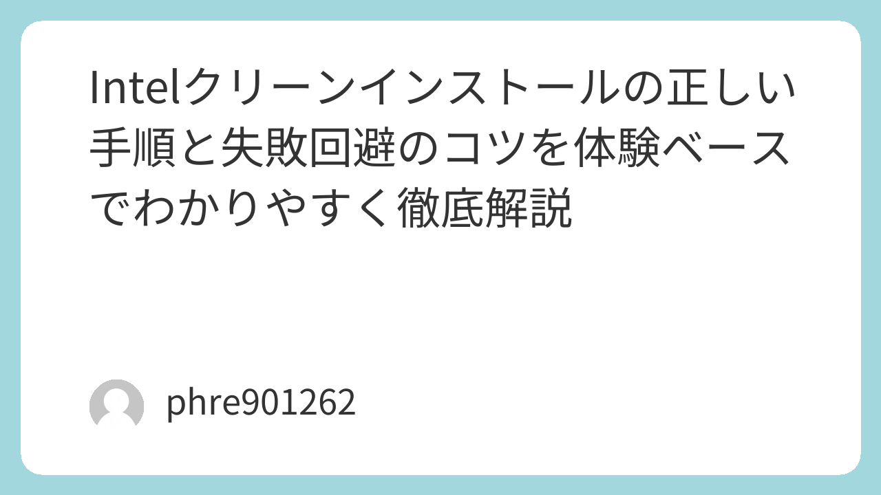 「intel クリーンインストール」と検索する人の多くは、更新後に急に不安定になったり、画面表示がおかしくなったり、Wi-FiやBluetoothの調子が落ちたりして、いったんきれいに入れ直したいと考えています。実際、私もドライバー更新のあとに妙なちらつきが出たとき、最初は再起動だけで済むだろうと軽く見ていました。ところが症状は消えず、通常の上書きインストールでも改善しませんでした。そこで初めてクリーンインストールを試したのですが、この方法は「ただ入れ直す」よりも手間があるぶん、成功すると不具合の原因をまとめて断ち切れる感覚があります。
