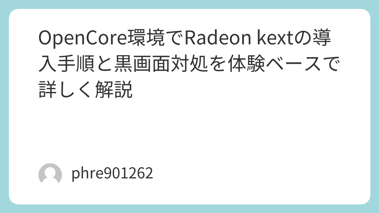 そこで分かったのは、「Radeon kext」という言葉で探している人の多くは、単体のkext名を知りたいわけではなく、OpenCore環境でAMD Radeonを安定動作させるための全体像を求めている、ということです。私自身もまさにそうでした。