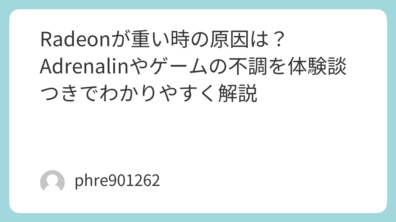 「最近なんだか重い」「前まで普通に動いていたのに急にカクつくようになった」。私が最初に感じた違和感は、まさにそんなものでした。使っていたのはRadeon搭載のPCです。ゲーム中に一瞬止まる、動画を再生すると妙にもたつく、デスクトップに戻るだけで引っかかる。最初は単純に性能不足を疑ったのですが、実際に原因を追っていくと、話はもっと複雑でした。