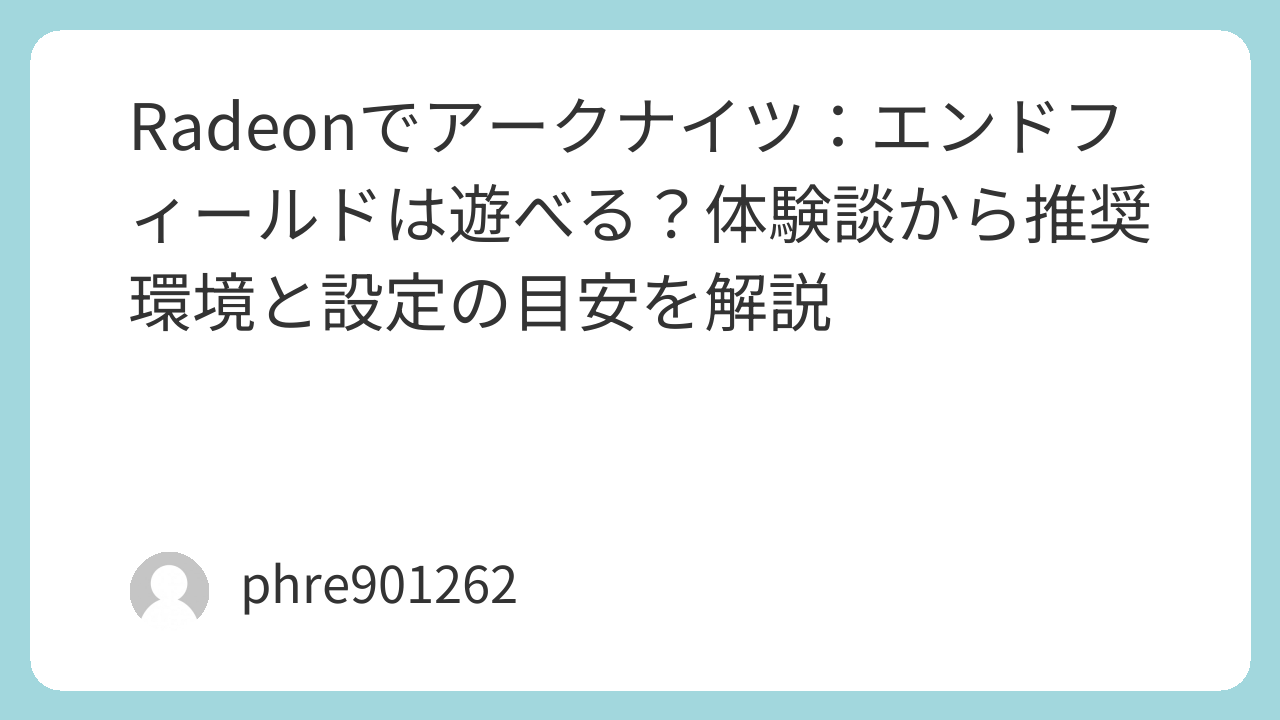 Radeon環境でアークナイツ:エンドフィールドを遊びたいと考えたとき、最初に浮かぶのは「そもそも快適に動くのか」という一点ではないでしょうか。