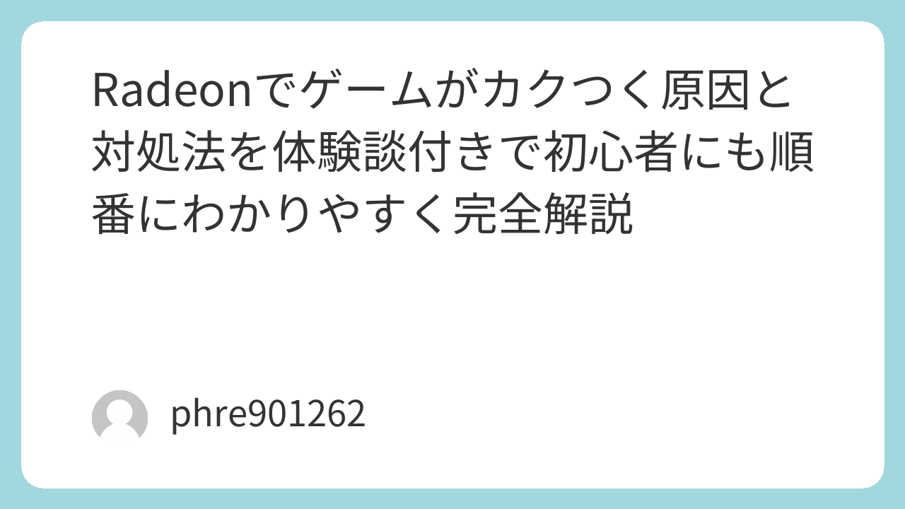 この記事では、Radeonで起こりやすいカクつきの原因を、実際によくある体験ベースで整理しながら、順番に試しやすい対処法までまとめていきます。