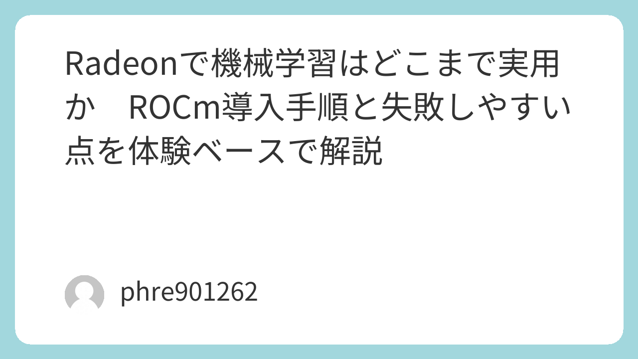 最初に詰まりやすいのは、対応状況の確認不足です。Radeonなら何でも同じようにいけると思って進めると、高確率で引っかかります。情報が増えてきたとはいえ、機械学習用途ではまだ組み合わせ依存の感覚が残っています。ここを雑にすると、環境構築の不具合なのか、単なる設定ミスなのか、切り分けが急に難しくなります。