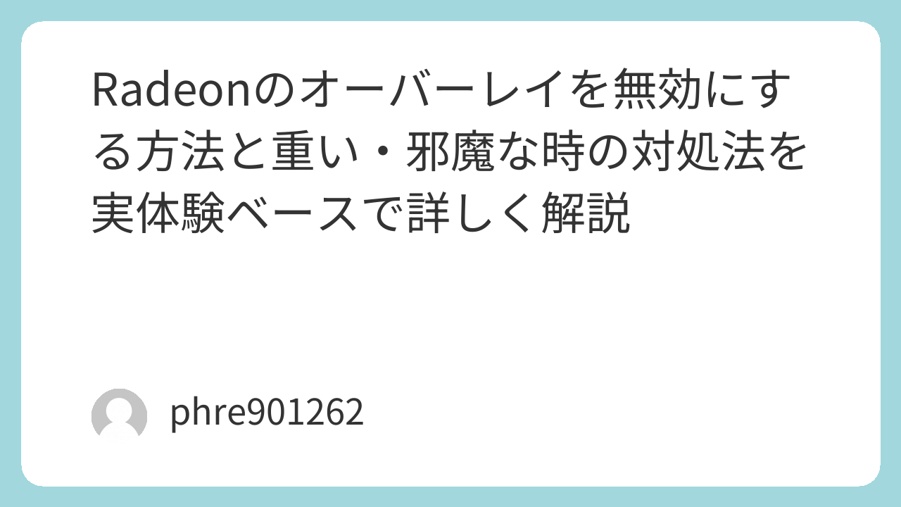 Radeonのオーバーレイを無効にしたいとき、最初から全部を切るのは簡単です。ただ、実際に使ってみると、困っている原因は人それぞれ少しずつ違います。