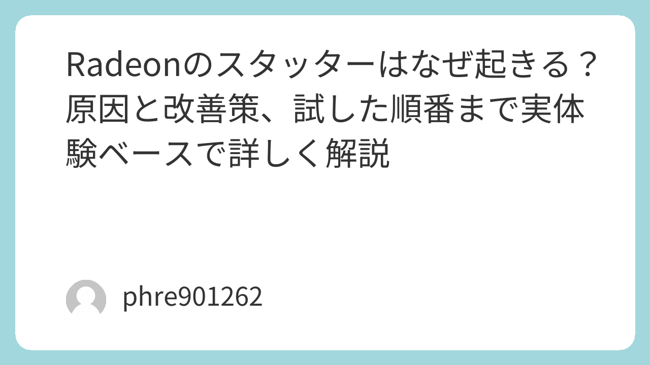 - Radeonのスタッターで悩んだら、順番に切り分けるのがいちばん早い