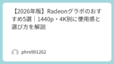 Radeonの機能を調べ始めると、「せっかくあるなら全部オンにしたほうが得では」と考えがちです。ですが、実際にはそう単純ではありません。