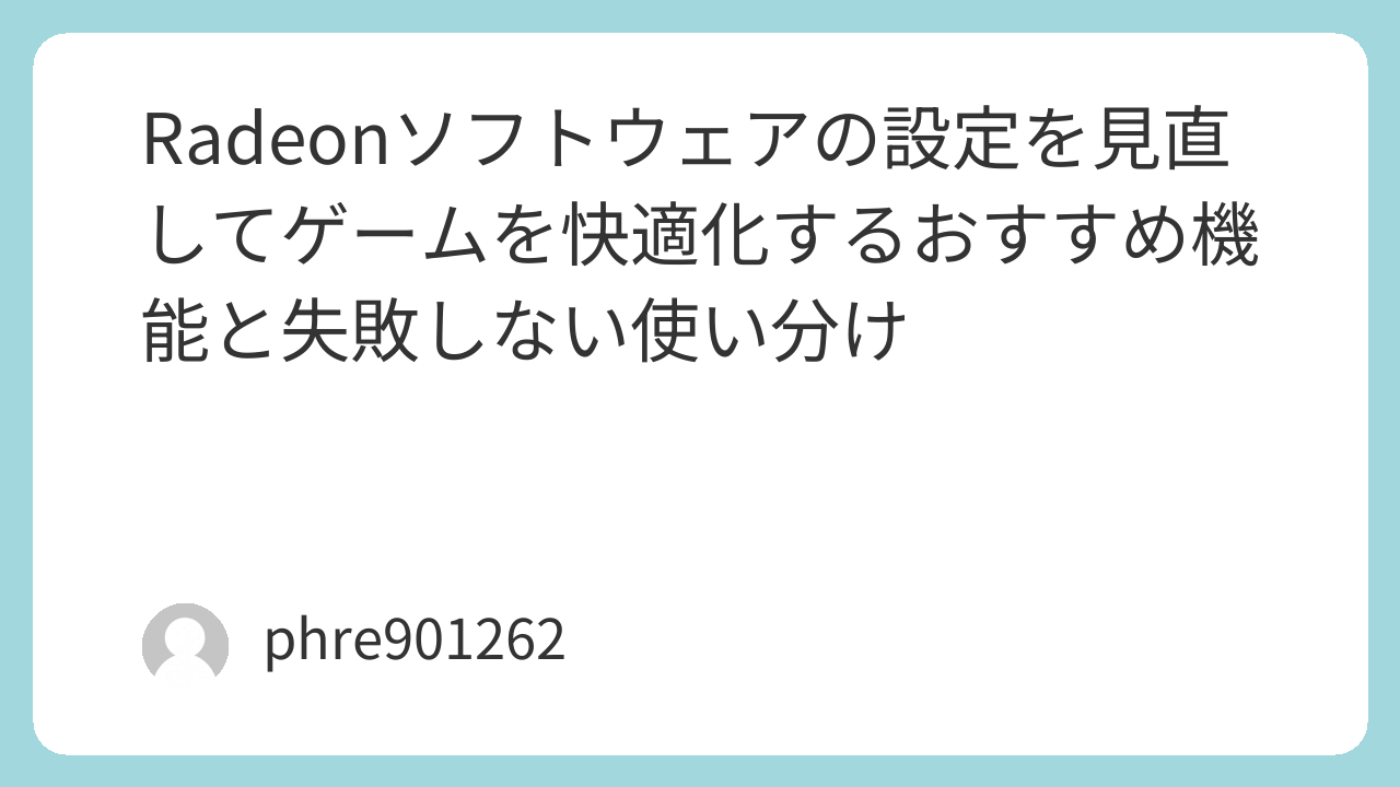 Radeon ソフトウェアの設定を探している人の多くは、「おすすめ設定をそのまま真似したい」と考えているはずです。その気持ちはよくわかります。私も最初は、ひとつの完成形があると思っていました。