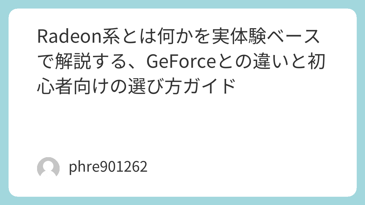 Radeon系とは何かを実体験ベースで解説する、GeForceとの違いと初心者向けの選び方ガイド