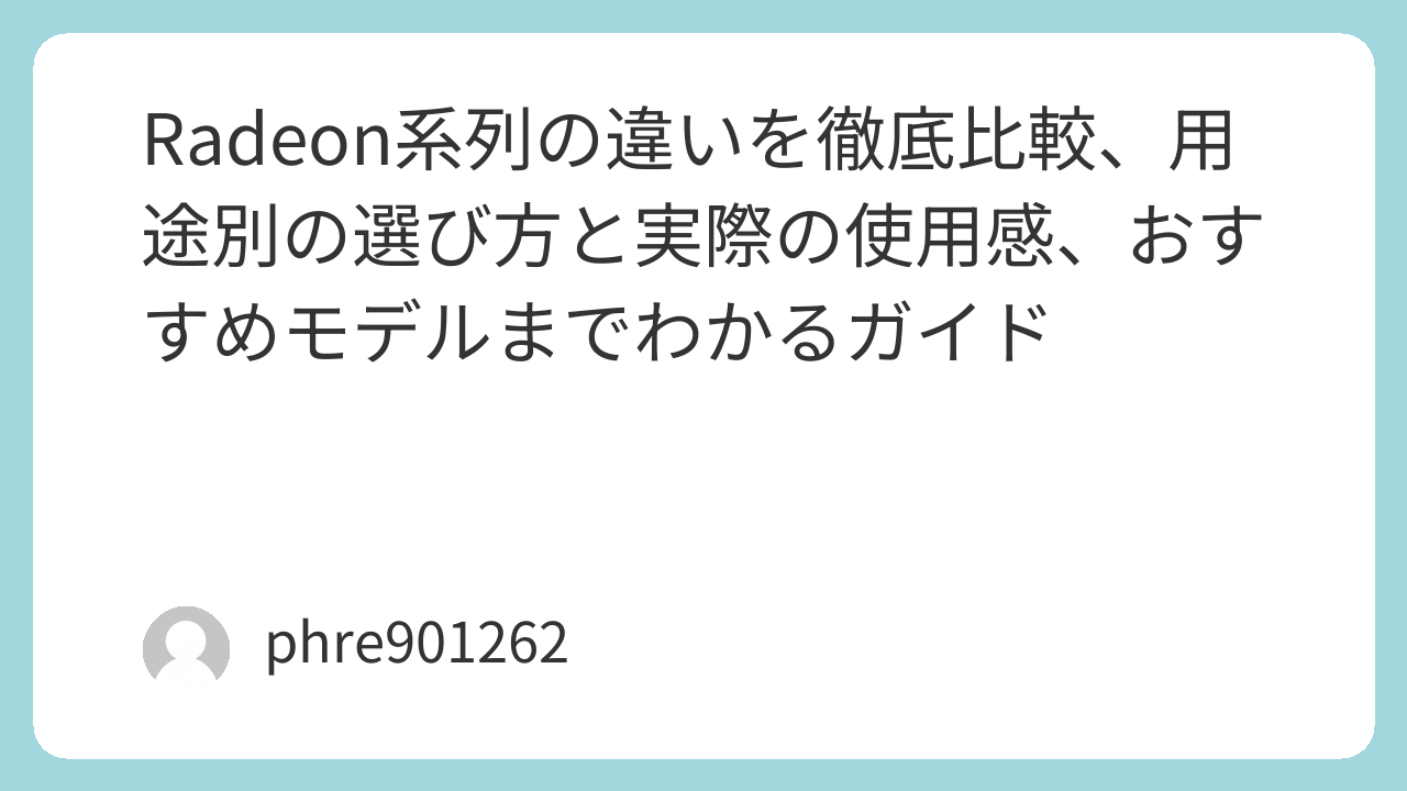 Radeon系列の違いを徹底比較、用途別の選び方と実際の使用感、おすすめモデルまでわかるガイド