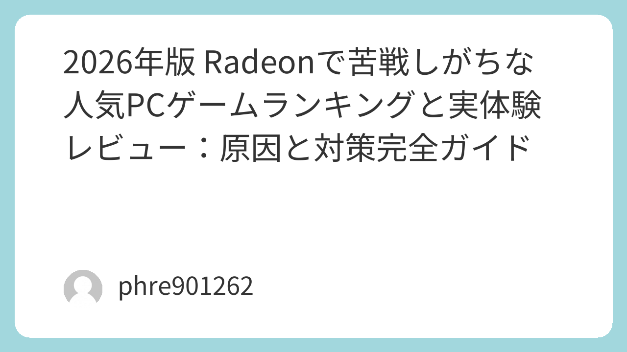 2026年版 Radeonで苦戦しがちな人気PCゲームランキングと実体験レビュー:原因と対策完全ガイド