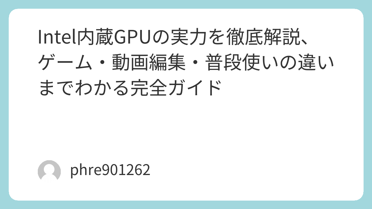Intel内蔵GPUの実力を徹底解説、ゲーム・動画編集・普段使いの違いまでわかる完全ガイド