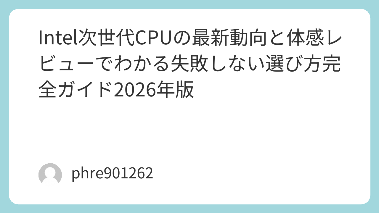 Intel次世代CPUの最新動向と体感レビューでわかる失敗しない選び方完全ガイド2026年版