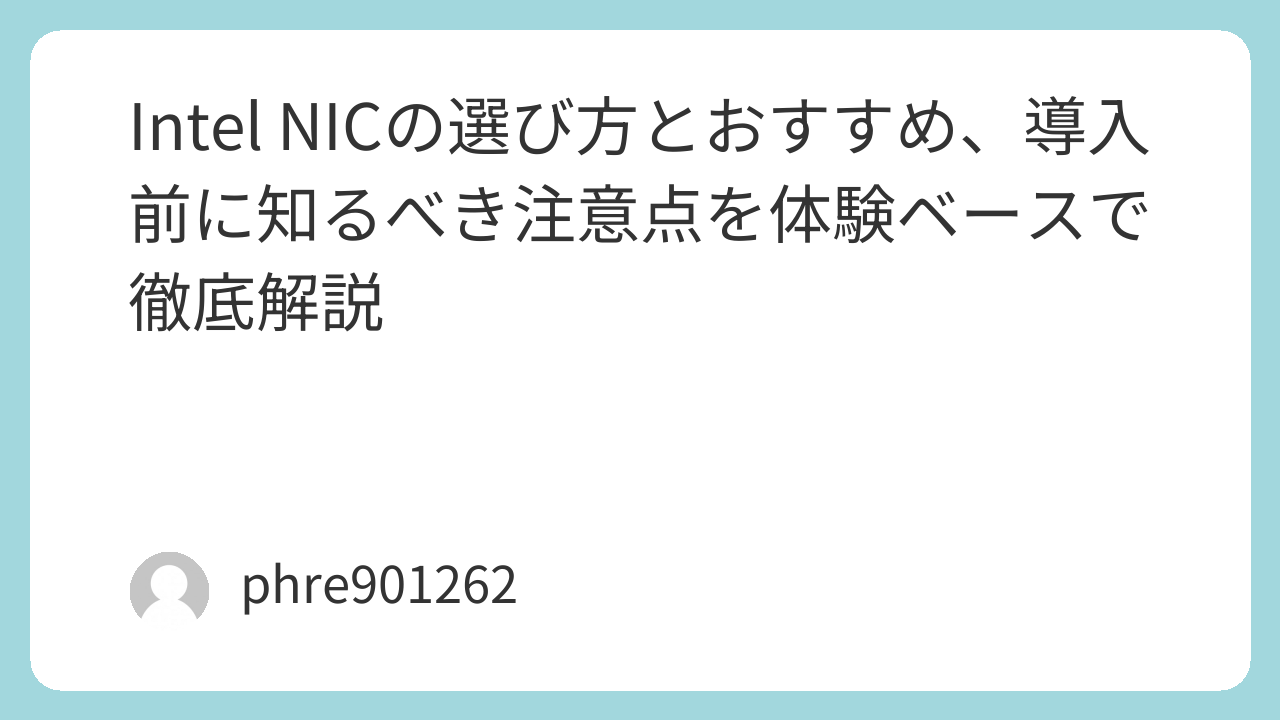 Intel NICの選び方とおすすめ、導入前に知るべき注意点を体験ベースで徹底解説