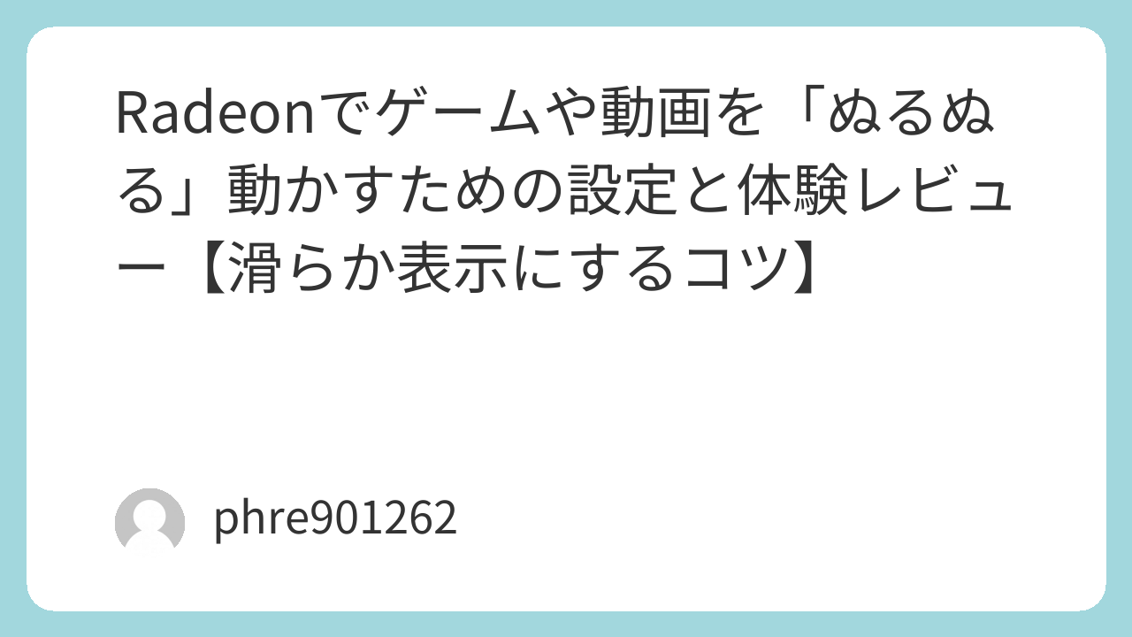 Radeonでゲームや動画を「ぬるぬる」動かすための設定と体験レビュー【滑らか表示にするコツ】