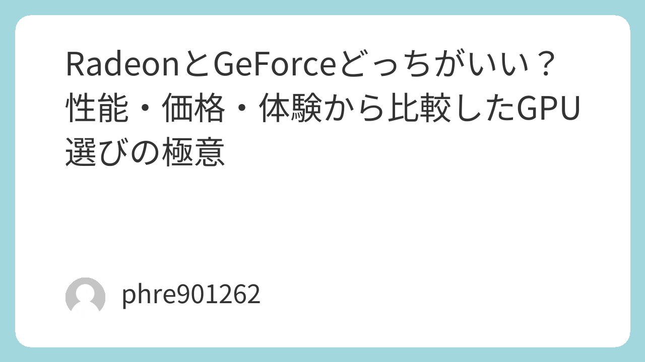 1. はじめに:Radeon と GeForce の基本