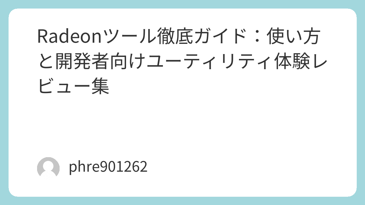 Radeonツール徹底ガイド:使い方と開発者向けユーティリティ体験レビュー集
