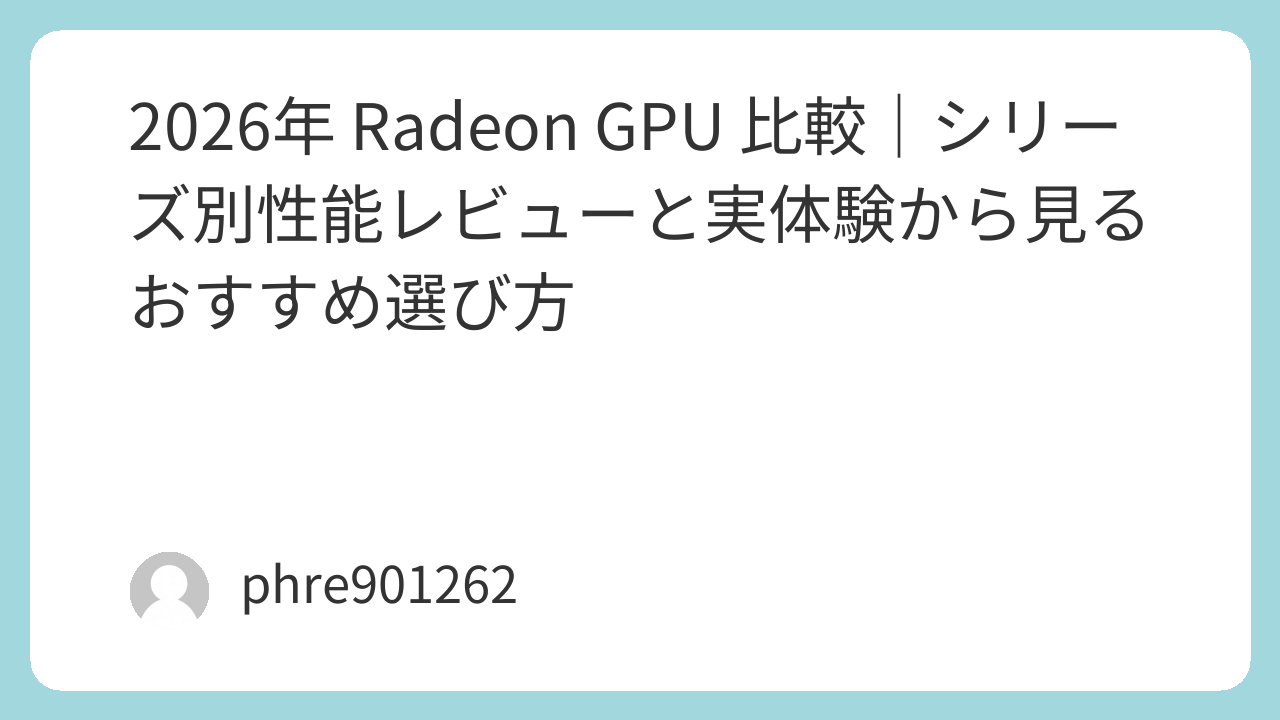 2026年 Radeon GPU 比較|シリーズ別性能レビューと実体験から見るおすすめ選び方