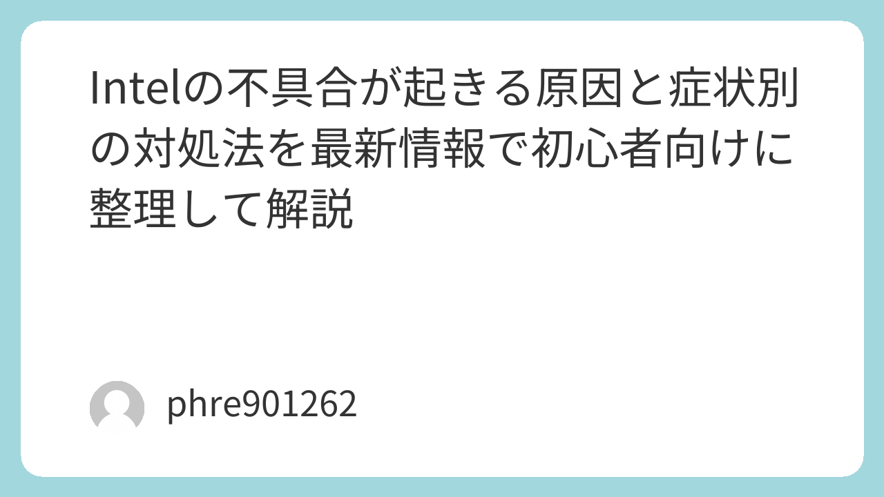 この記事では、Intelの不具合でよくある症状を整理しながら、原因の切り分け方と対処法を初心者にもわかりやすくまとめます。読んだあとに「まず何を確認すればいいのか」がはっきり見えるように、実際によくあるつまずき方や体験ベースの流れも交えて解説していきます。