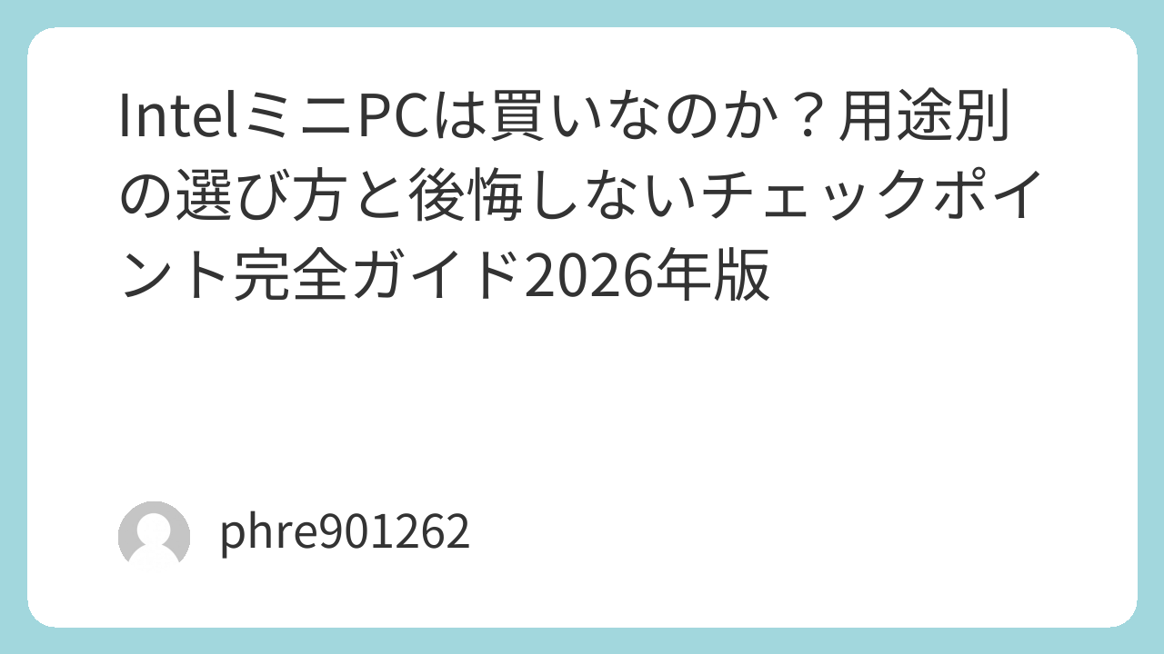 IntelミニPCは買いなのか?用途別の選び方と後悔しないチェックポイント完全ガイド2026年版