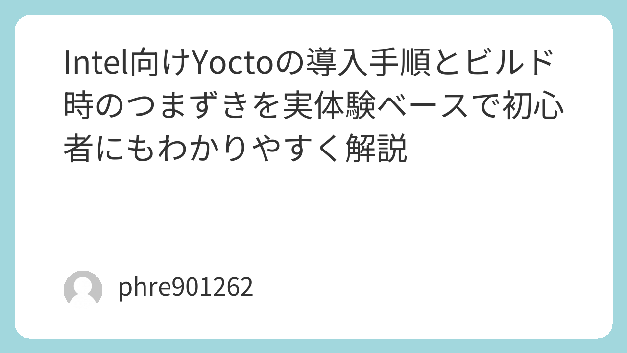 実際にIntel向けYoctoを触っていると、詰まりやすい場面には共通点があります。