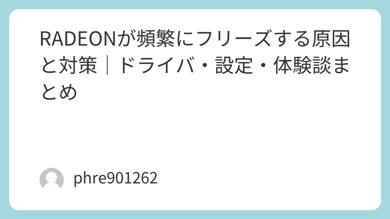 RADEONが頻繁にフリーズする原因と対策|ドライバ・設定・体験談まとめ