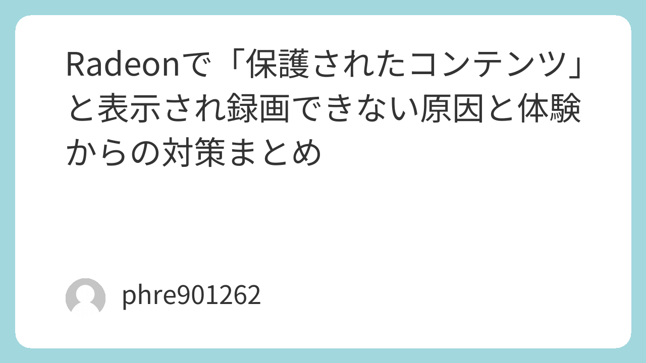 もし、バックグラウンドでアプリが動いていないにも関わらず「保護されたコンテンツ」のエラーが表示される場合、Radeonドライバの不具合が原因の可能性があります。私は一度、最新のRadeonドライバをインストールしても問題が解消されず、再インストールを試みた結果、正常に録画できるようになりました。特に、ドライバのアップデート後に不具合が発生することがあるため、その都度、クリーンインストールを行うことをおすすめします。