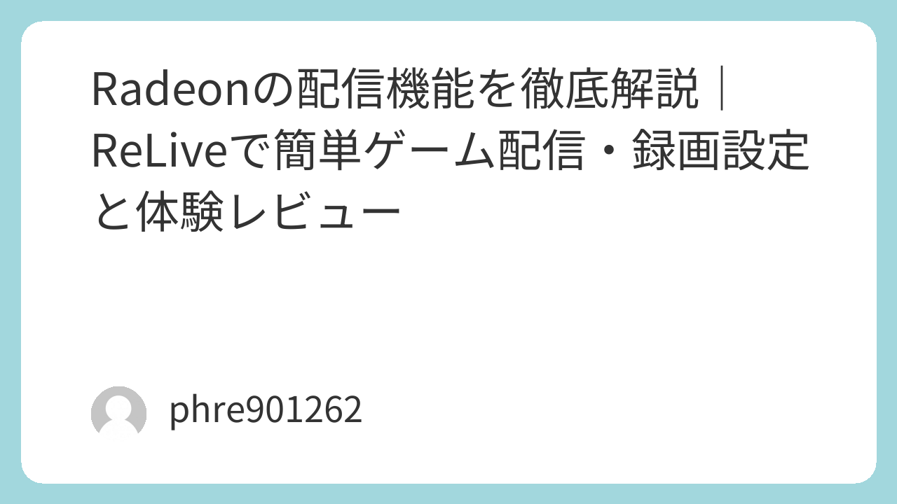 Radeonの配信機能を徹底解説|ReLiveで簡単ゲーム配信・録画設定と体験レビュー