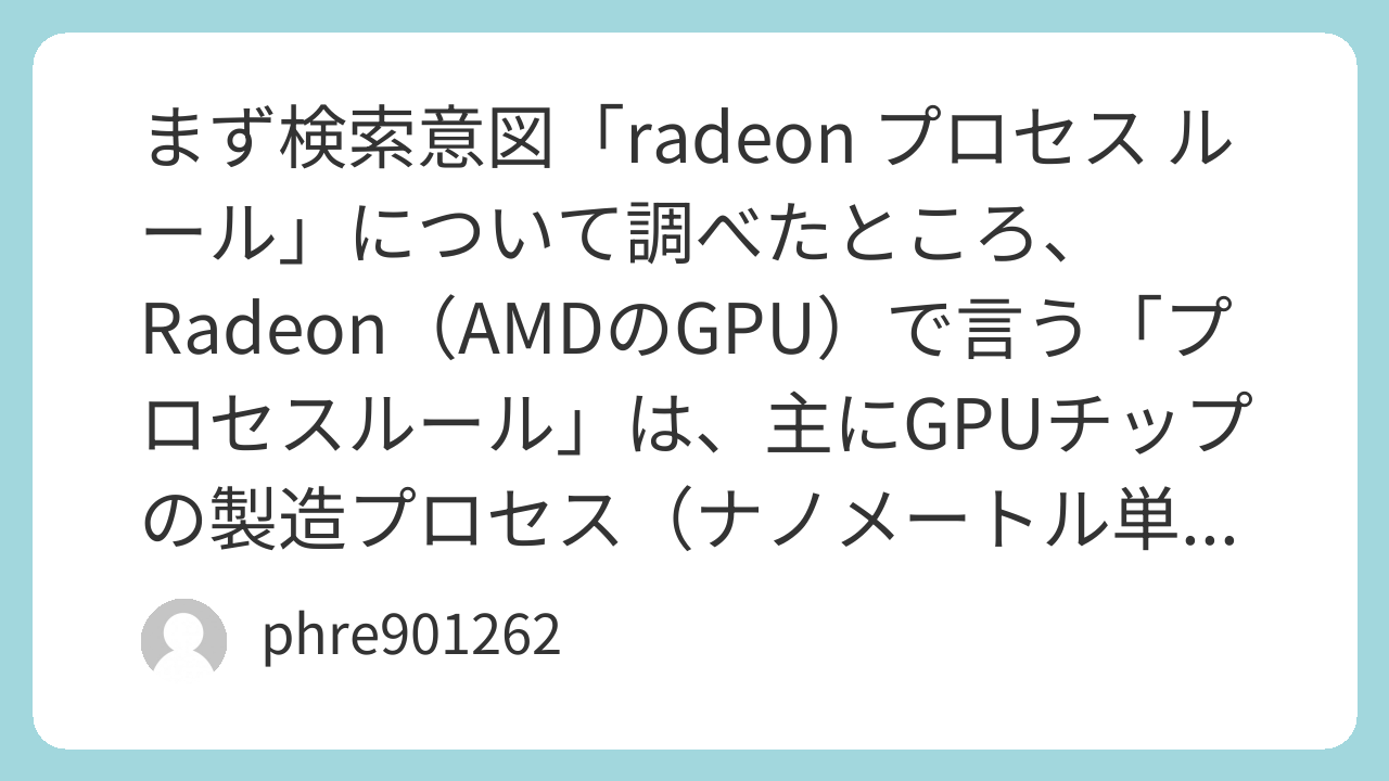 タイトル案・構成に沿って記事を書くと、Radeonのプロセスルールとは何かを初心者〜中級者にわかりやすく伝えつつ、体験情報を交えた読みやすい内容になります。