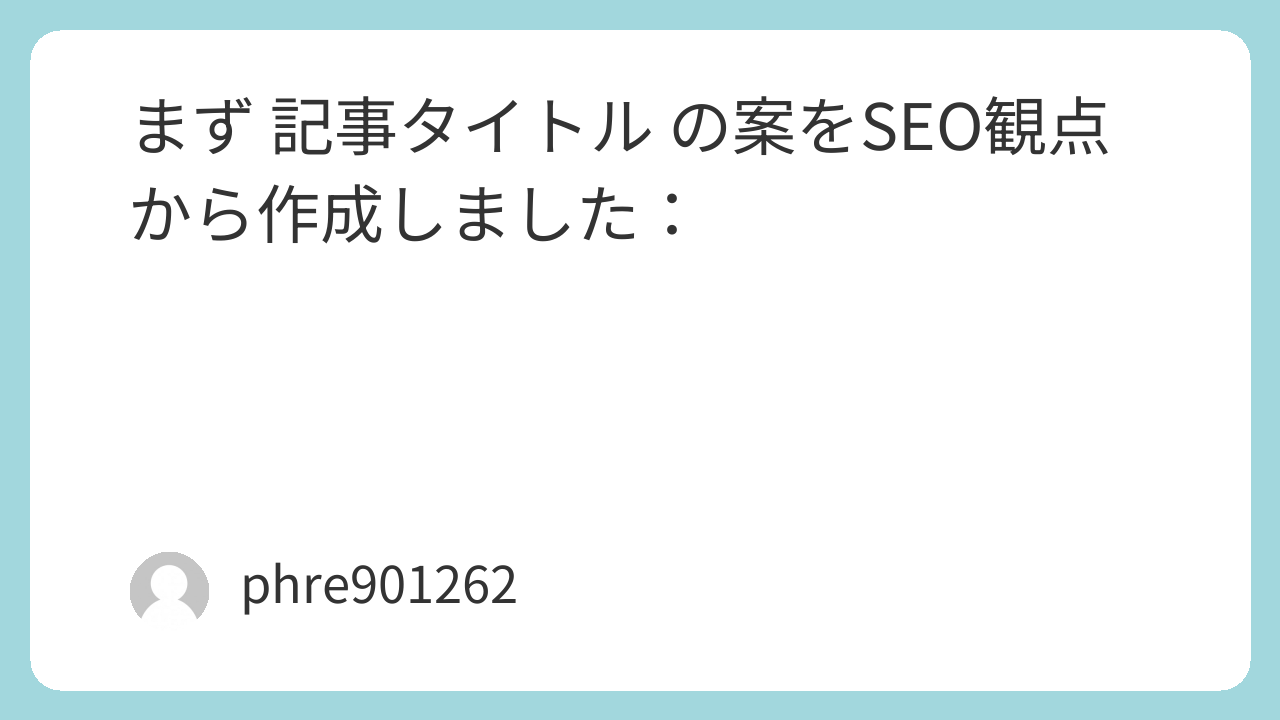 まず 記事タイトル の案をSEO観点から作成しました: