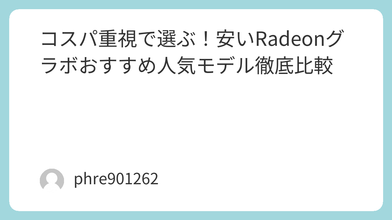 はじめに:安いRadeonグラボを選ぶ理由