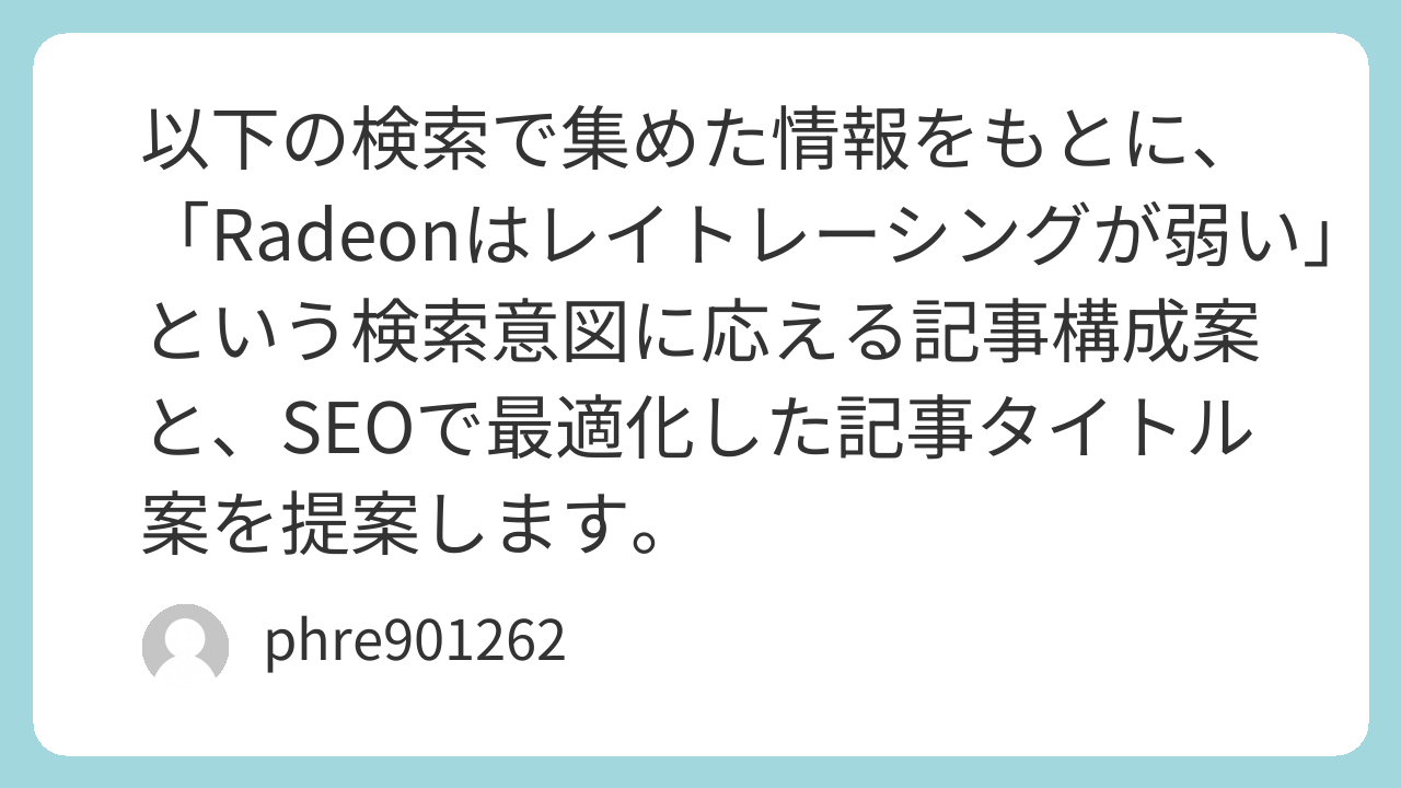 1. はじめに:Radeonでレイトレーシングは本当に弱い?