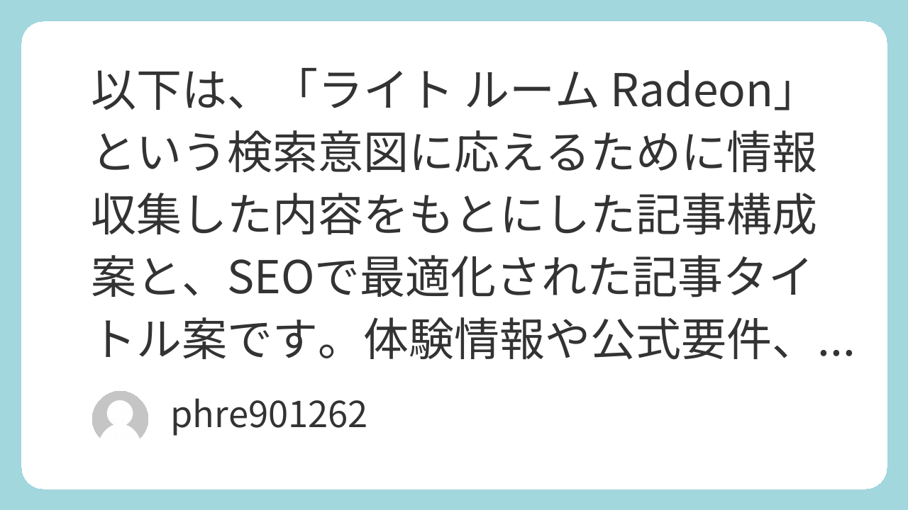 - RadeonでもLightroomの体験は十分可能で、特に高メモリ・最新アーキテクチャのモデルで快適さを実感しやすい。