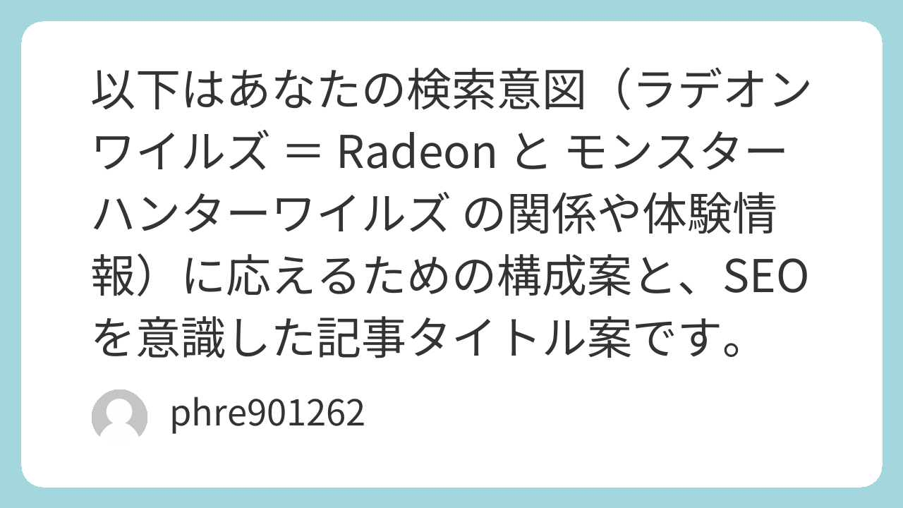 1. はじめに:ワイルズと Radeon の関係とは?