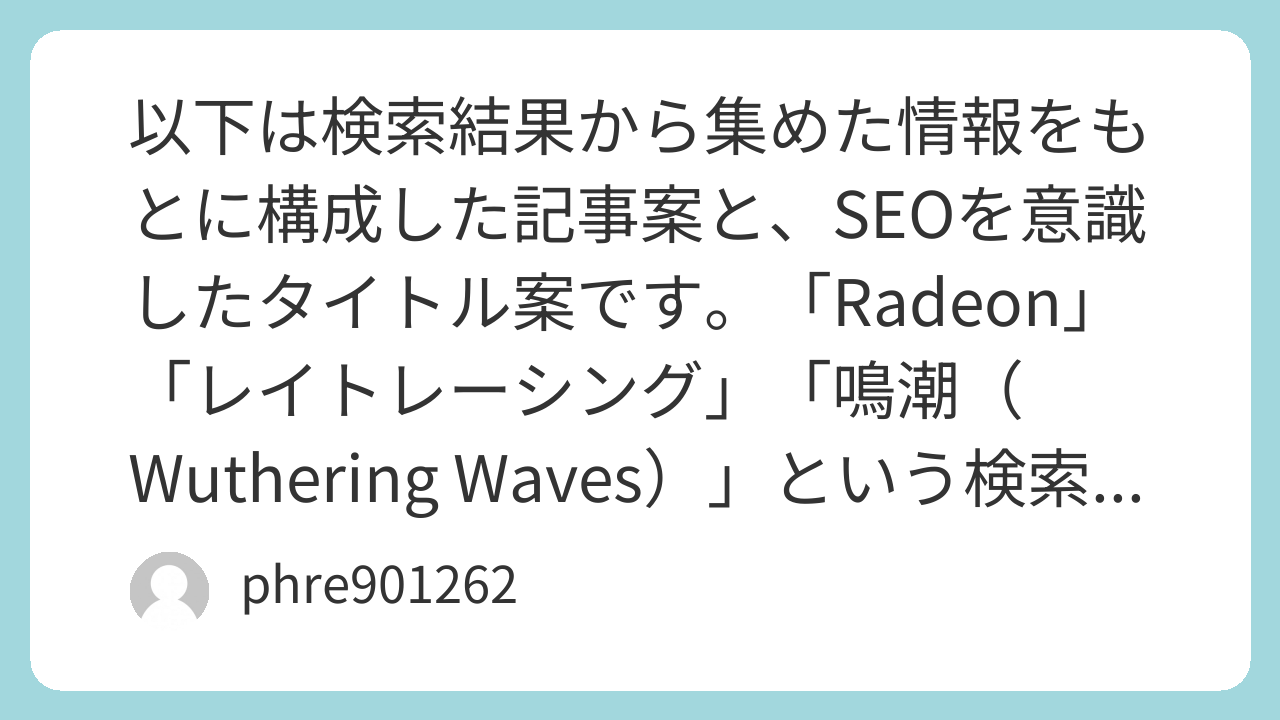 以下は検索結果から集めた情報をもとに構成した記事案と、SEOを意識したタイトル案です。「Radeon」「レイトレーシング」「鳴潮(Wuthering Waves)」という検索意図に即した内容です。