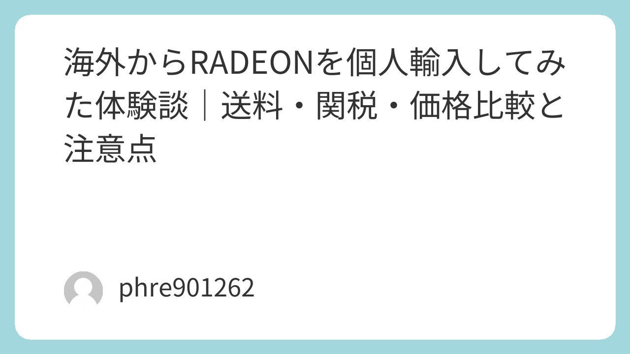 今回は、私が実際に海外からRADEONを個人輸入してみた体験を元に、輸入時のプロセスやその際のトラブル、そして価格の比較について詳しく紹介します。これから輸入を検討している方にとって、少しでも参考になれば幸いです。