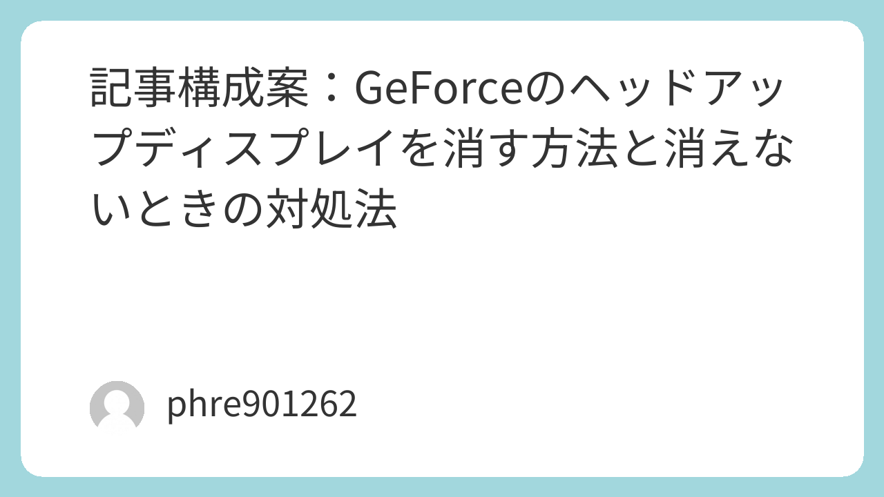 結論として、検索ユーザーが知りたいのは「今出ている表示を何手で消せるか」です。なので記事全体は、表示の正体を見分ける→最短操作で消す→消えないときの切り分け、という順番で組むのがSEO的にも読了率的にも強いです。特に体験パートでは、誤操作で出したケース、アップデート後に戻ったケース、GeForce NOWと勘違いしたケースを厚めにすると、机上の説明だけの記事よりも刺さりやすくなります。 (NVIDIA)