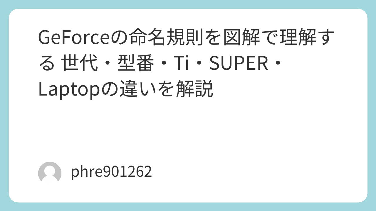 の順で読むようにまとめる。記事の締めでは、「自分も最初は型番が呪文に見えたが、世代→帯→派生→Laptop表記の順に追うだけで、BTOの比較や中古GPU選びがかなり楽になった」と体験ベースで落とすと、検索意図にも感情にも合う。
