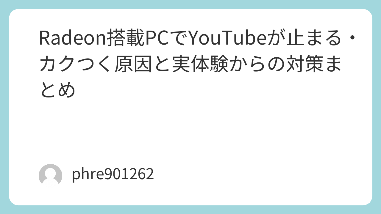 YouTubeで動画を視聴中に「止まる」「カクつく」といった問題に遭遇したことがある人は多いかもしれません。特に、Radeon(AMD)GPUを搭載したPCでこの現象が発生することがよくあります。私もこの問題に悩まされ、いくつかの対策を試みました。この記事では、その経験を基に、YouTube再生が止まる原因と、私が試した解決策について紹介します。