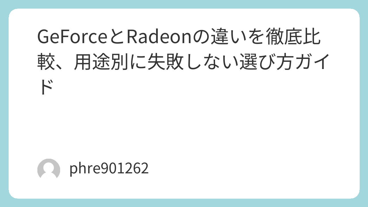 - 実際の使用感としては、GeForceは“機能で伸ばす”、Radeonは“元の強さで押す”という印象で書くと体験談になじみやすい (NVIDIA)