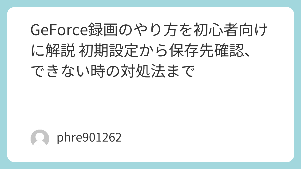GeForce録画のやり方を初心者向けに解説 初期設定から保存先確認、できない時の対処法まで