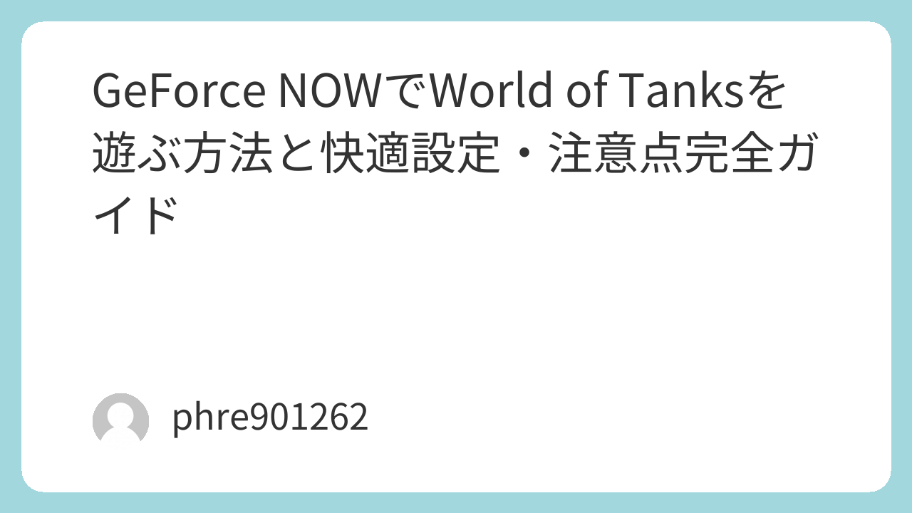 GeForce NOWでWorld of Tanksを遊ぶ方法と快適設定・注意点完全ガイド