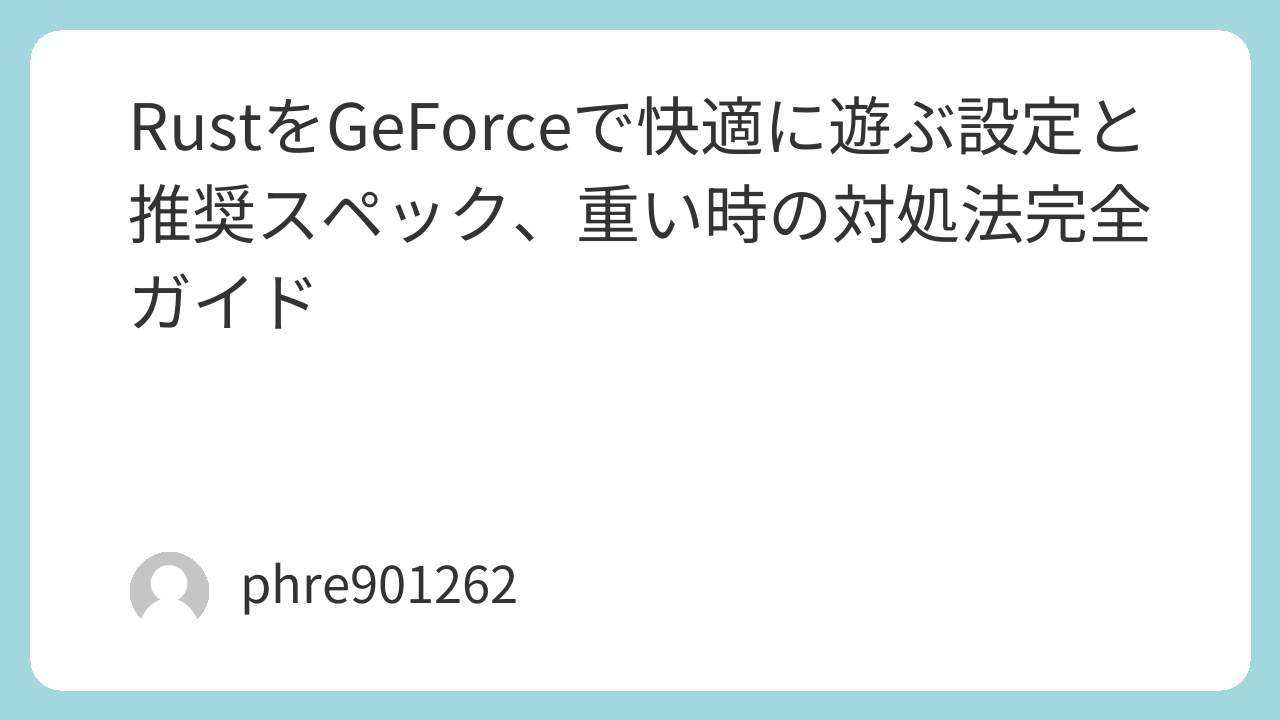 - RustはSteamの動作環境で、最低でもNVIDIA GeForce GTX 1060、推奨ではNVIDIA GeForce RTX 3060が挙げられているため、GeForce環境との相性を前提に情報を探している人は多い (Steamストア)