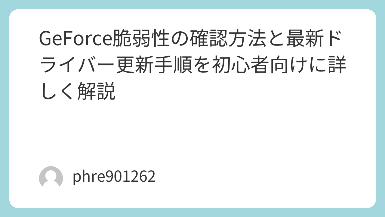 - 冒頭では「GeForce本体が危険」というより、「古いGPUディスプレイドライバーを放置することがリスク」だと整理すると読み手に伝わりやすい。
