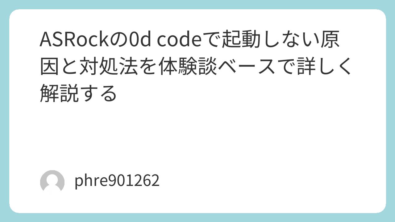ASRockの0d codeは、見た目のインパクトほど単純なエラーではありません。実際には、メモリの接触不良、設定の不安定さ、再起動時の相性、グラフィック関連の接続、周辺機器の影響など、複数の原因が絡みます。
